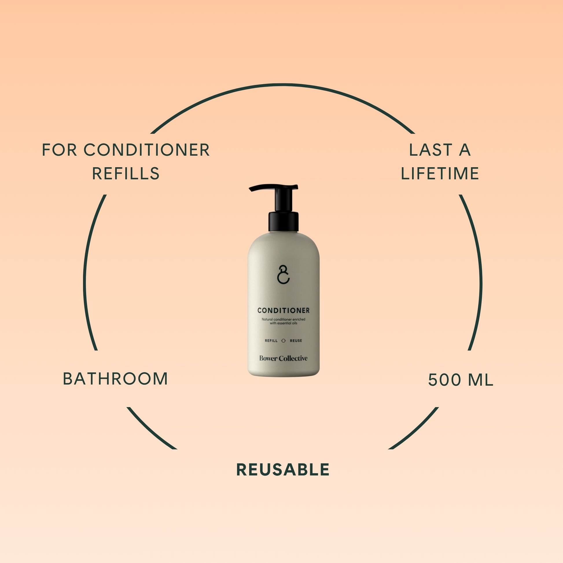 The bottle is made here in the UK and the pump in Italy. This reusable conditioner dispenser is a core part of our reuse and refill system to help you say goodbye to single-use plastic bottles.