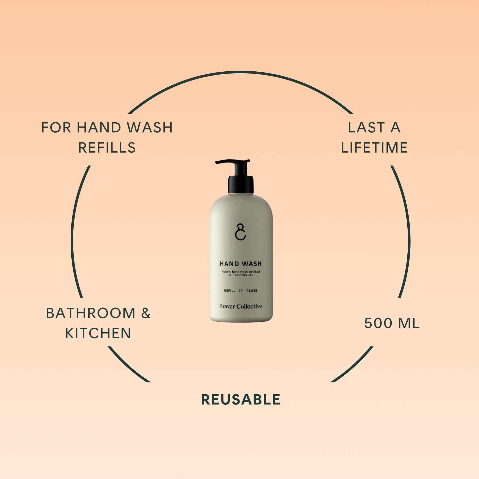 The bottle is made here in the UK and the pump in Italy. This reusable hand wash dispenser is a core part of our reuse and refill system to help you say goodbye to single-use plastic bottles.