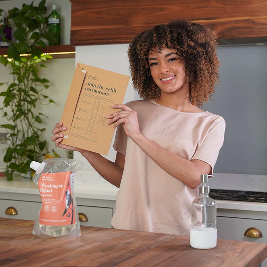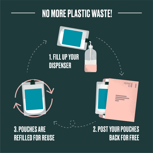 Eliminate plastic waste in your home with our reuse and refill system and easy pouch returns!