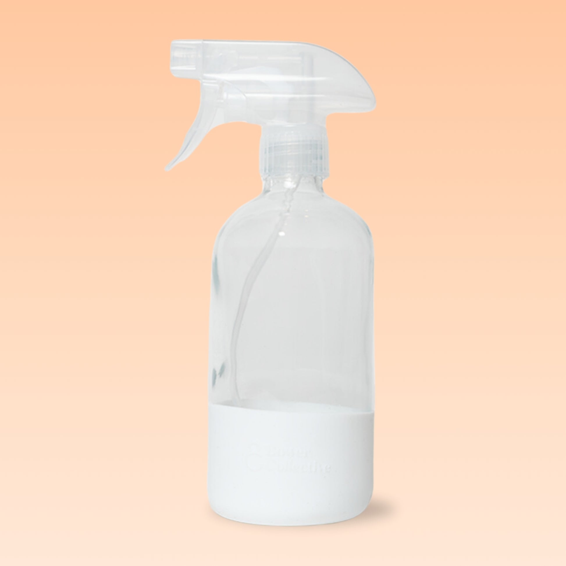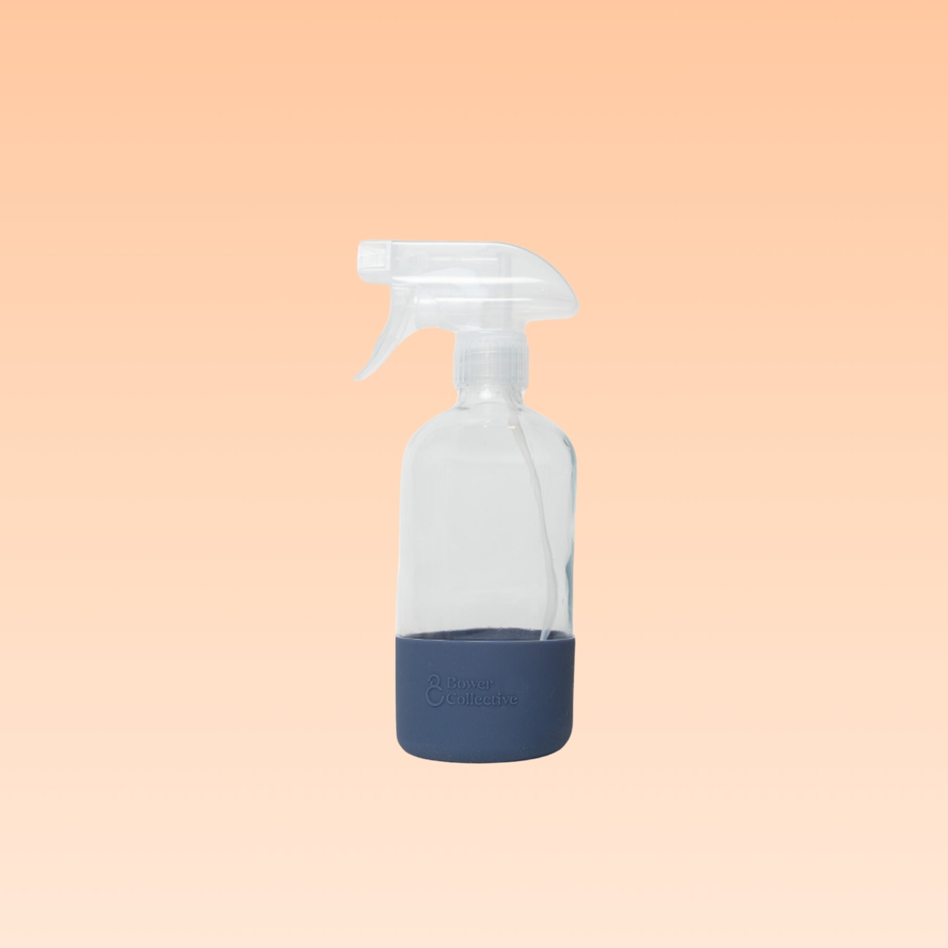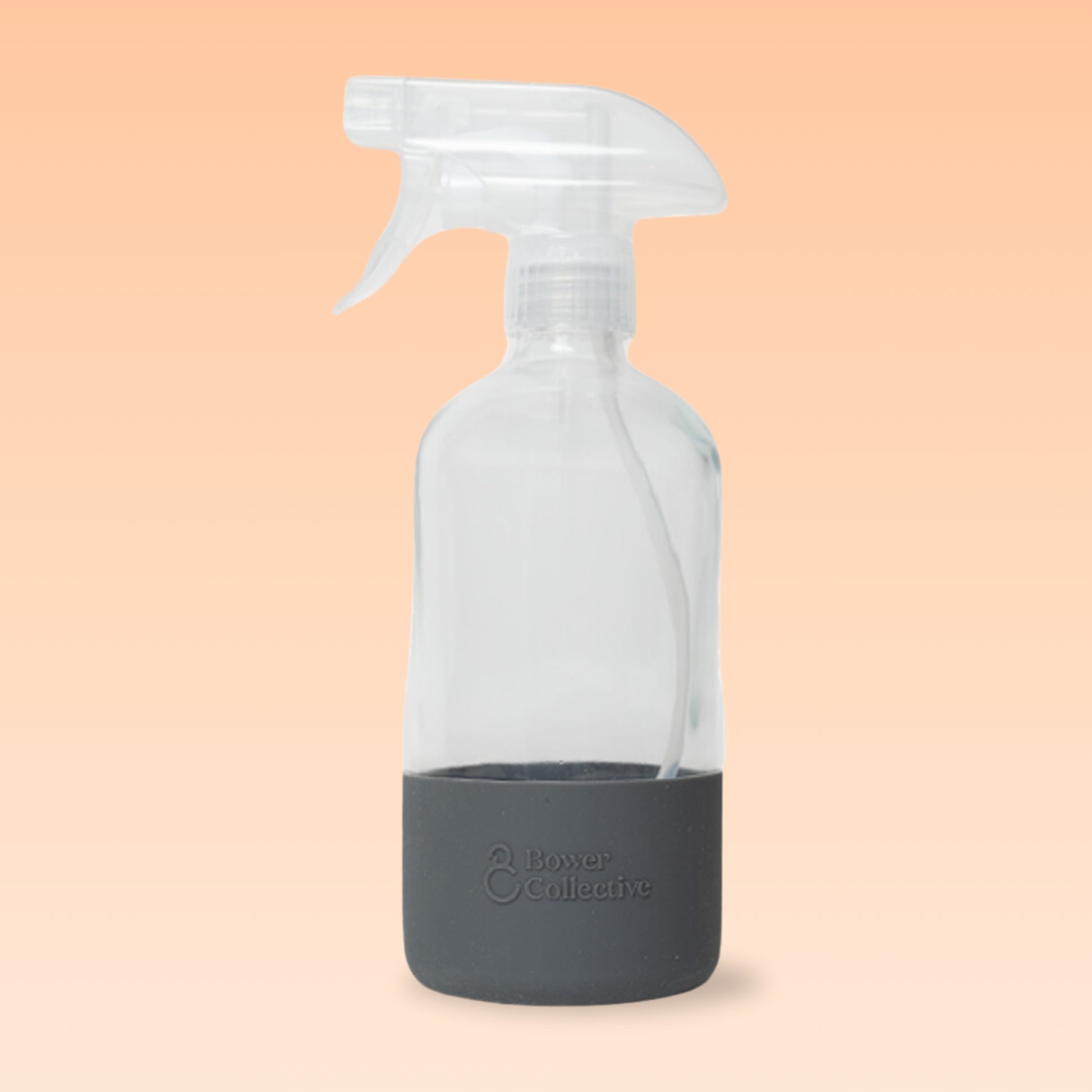 Our reusable glass trigger spray dispenser is a sleek and stylish addition to your sustainable home, with a silicone sleeve for added protection.